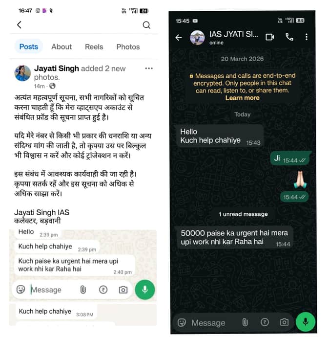 Barwani News: बड़वानी कलेक्टर जयति सिंह का वॉट्सएप अकाउंट हैक, ओटीपी मांगने वाले मैसेज से अलर्ट