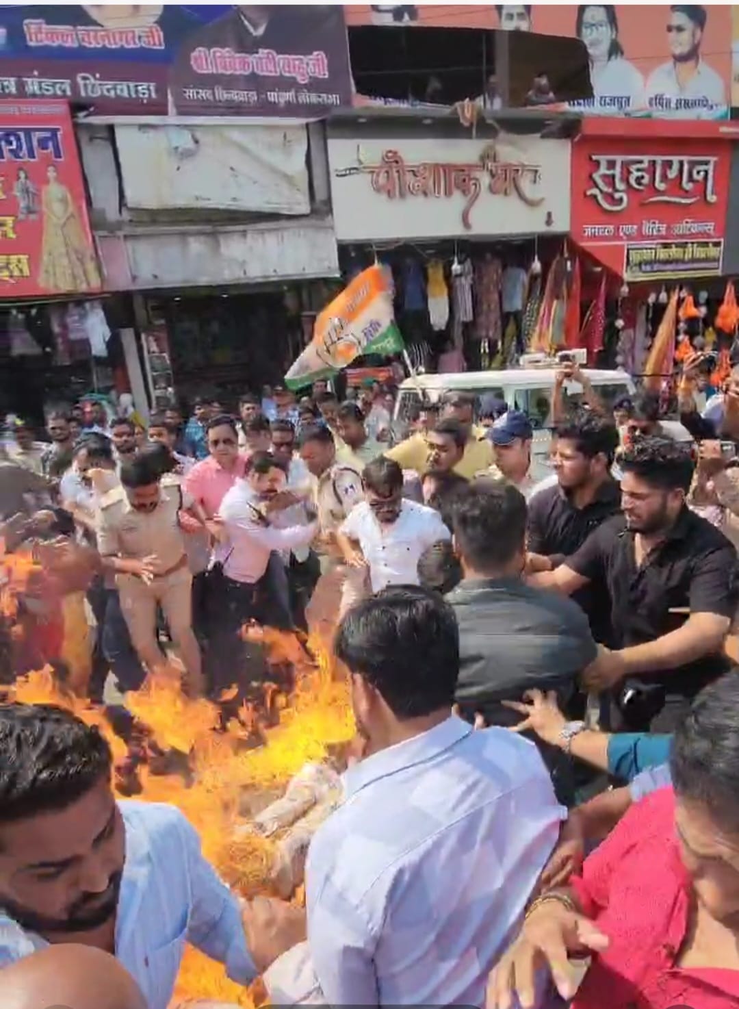 MP Politics : छिंदवाड़ा में कांग्रेस का प्रदर्शन हादसे में बदला, तीन पुलिसकर्मी झुलसे; पुतला दहन में लगी आग