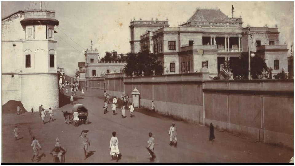 राजवाड़ा का प्राचीन चित्र। पहले राजवाड़ा के सामने ही त्यौहार मनाए जाते थे। बाजार सजते थे। राजवाड़ा आज भी लोगों के उत्साह का केंद्र है। टीम इंडिया की जीत का जश्न आज भी शहरवासी यहां मनाते है।