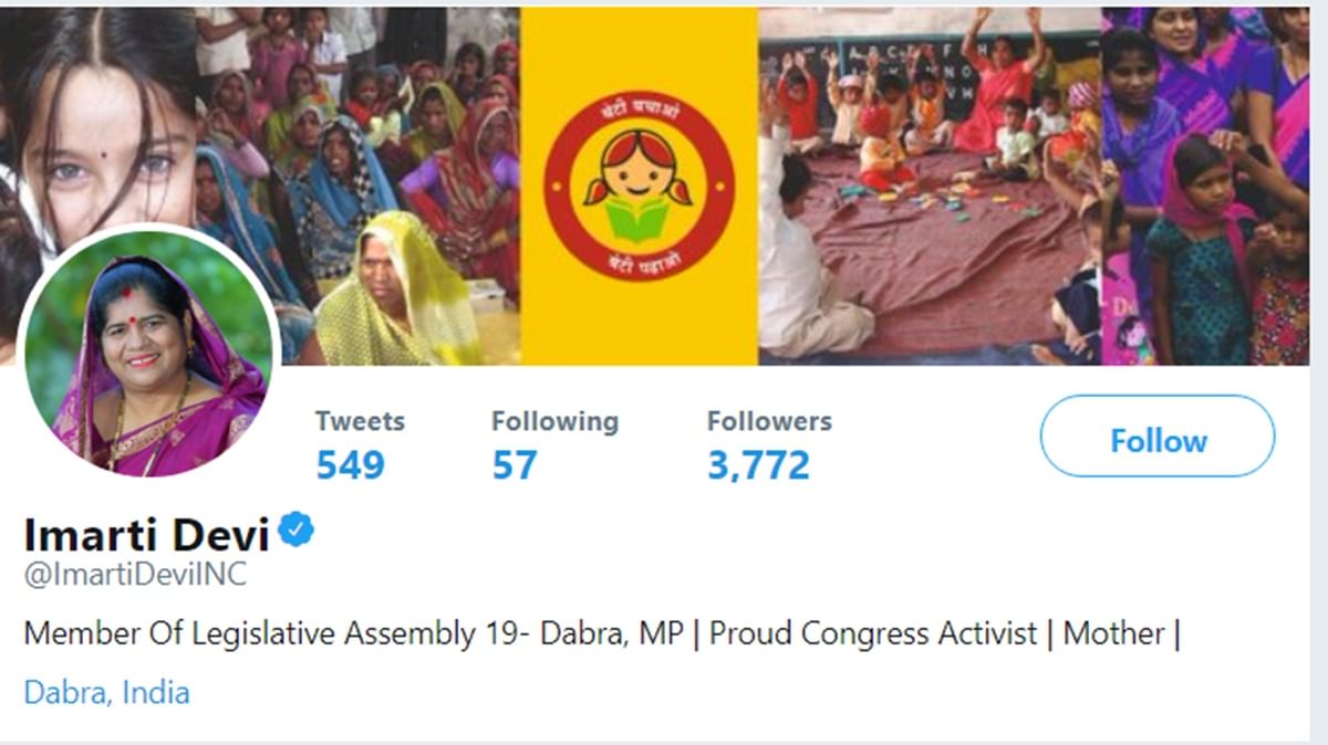 सिधिंया खेमे की मंत्री इमरती देवी ने भी ट्विटर प्रोफाइल से हटाया 'कैबिनेट मंत्री'