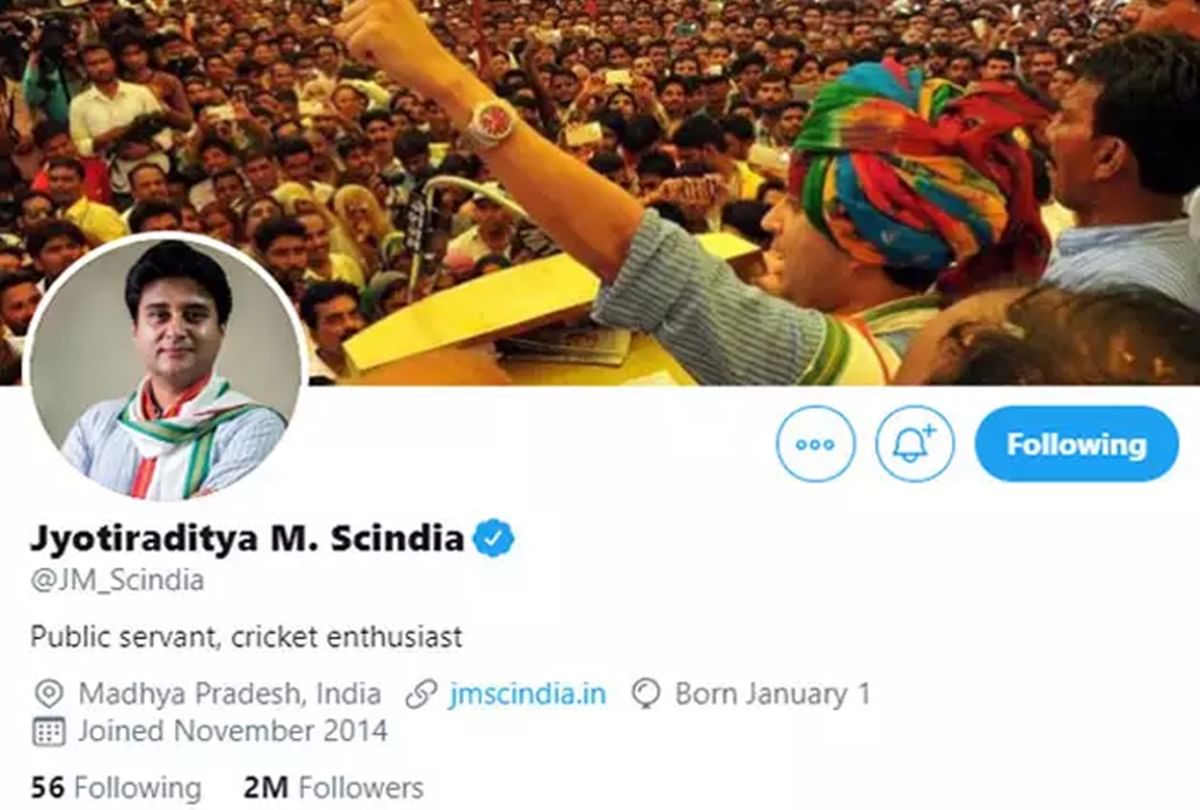 ज्योतिरादित्य सिंधिया ने ट्विटर स्टेटस बदलकर जनसेवक लिखा तो सियासत गरमाई