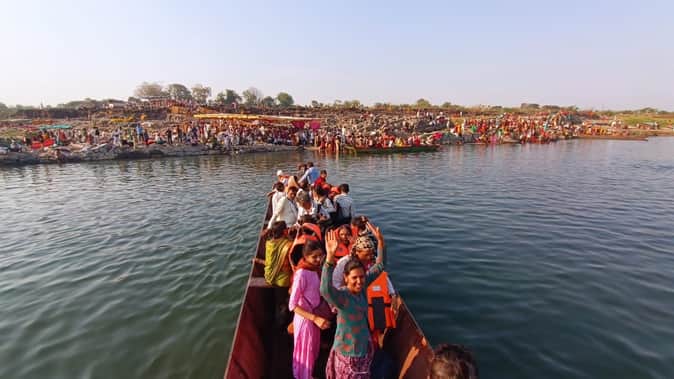 महेश्वर पंचकोशी यात्रा चौथे पड़ाव पर: 20 हजार श्रद्धालु पहुंचे जलकोटी, नर्मदा नदी को किया पार; आगे बढ़ी यात्रा