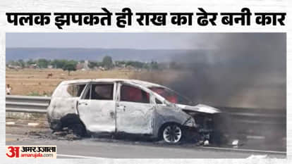 मंदसौर में भयावह मंजर: एक्सप्रेसवे पर आग का गोला बनी कार, ड्राइवर की सूझबूझ से बची सबकी जान