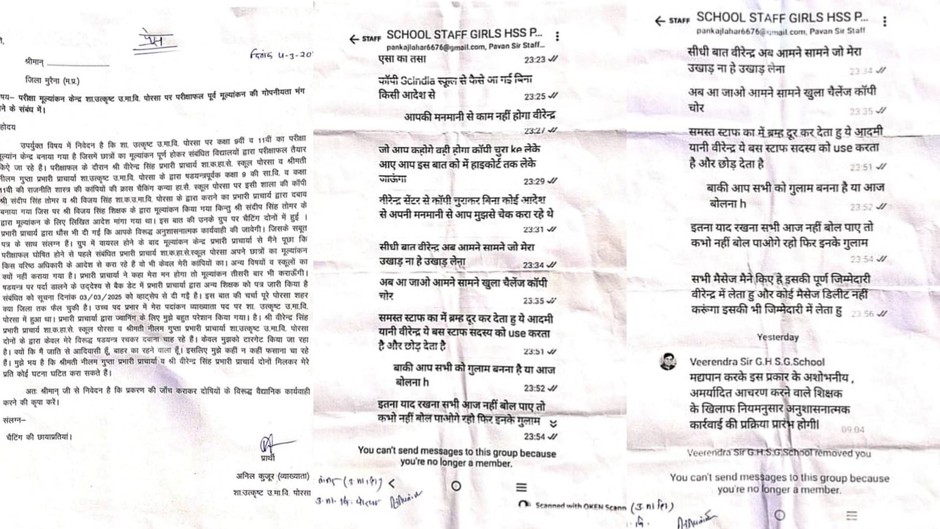 जानकारी के अनुसार बता दें, जिले के पोरसा ब्लॉक अन्तर्गत आने वाले शासकीय कन्या हायर सेकेंडरी स्कूल में बोर्ड परीक्षाओं से पहले कक्षा नौ और 11 की परीक्षाएं सम्पन्न कराकर कॉपियों को मूल्यांकन के लिए शासकीय उत्कृष्ट विद्यालय पोरसा में भेजी गई थी। विद्यालय प्राचार्य ने विषय वार परीक्षाओं का मूल्यांकन कराया। लेकिन इस मूल्यांकन से शासकीय कन्या हायर सेकेंडरी पोरसा के प्रभारी प्राचार्य संतुष्ट नहीं थे और उन्होंने उत्कृष्ट विद्यालय की प्राचार्या से साठ गाठ कर शासन के नियमों को ताक पर रखकर कक्षा नौ और 11 की सामाजिक विज्ञान एवं राजनीति शास्त्र की कॉपियों को चोरी कर अपने विद्यालय मंगवाकर पुर्नमूल्यांकन करने के लिए विद्यालय के व्याख्याता संदीप सिंह तोमर और विजय सिंह तोमर को दी गई।