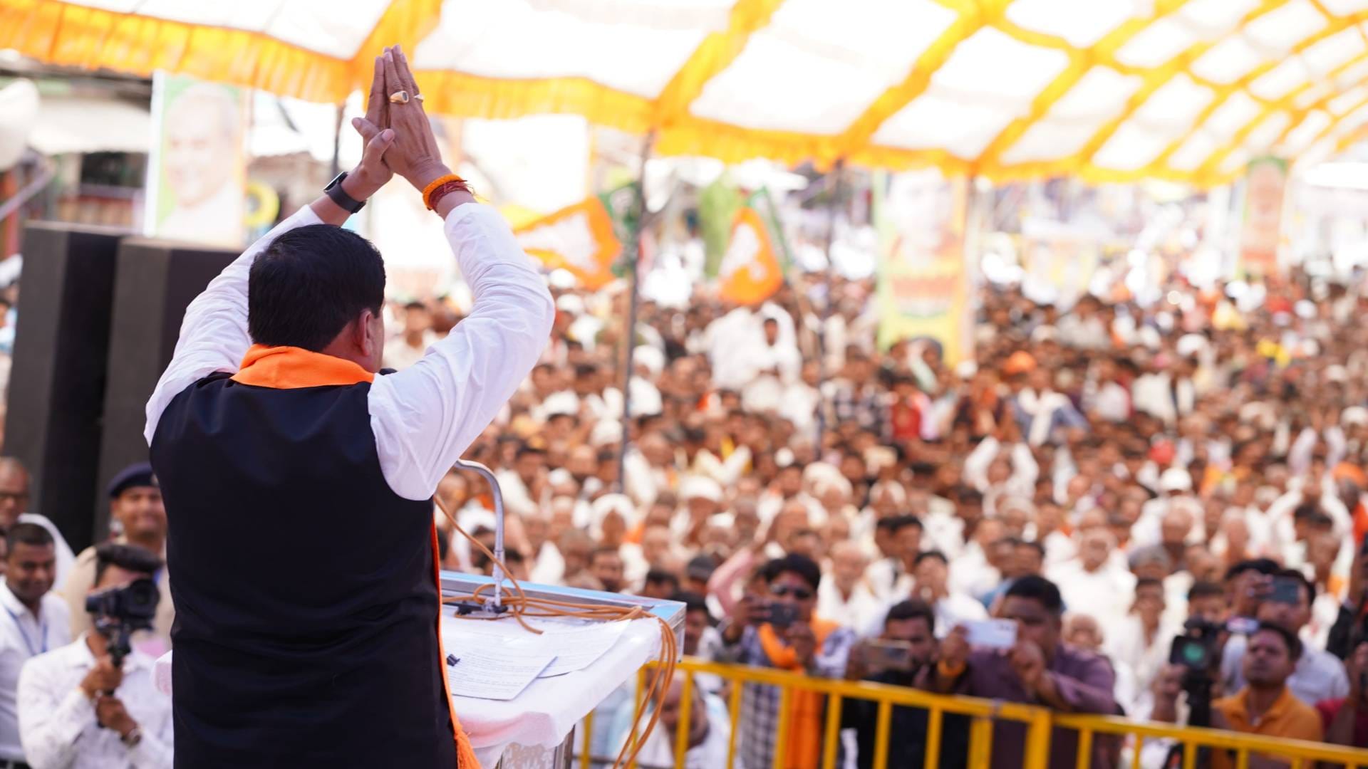 सभा में सीएम मोहन यादव को कहना पड़ा कि ये मेरी और आपकी इज्जत का सवाल है। महाराज को वोट भर-भर कर जाने चाहिए। इस मौके पर मंच पर ज्योतिरादित्य सिंधिया भी मौजूद रहे। लोकसभा में भाजपा प्रत्याशी ज्योतिरादित्य सिंधिया के समर्थन में सीएम मोहन यादव ने बदरवास के अग्रवाल धर्मशाला में चुनावी सभा को संबोधित किया। इस दौरान मोहन यादव और केंद्रीय मंत्री ज्योतिरादित्य सिंधिया को बदरवास में बड़े पैमाने में बनने वाली मोदी जैकेट भी पहनाई गई। साथ ही जोरदार स्वागत किया गया।
