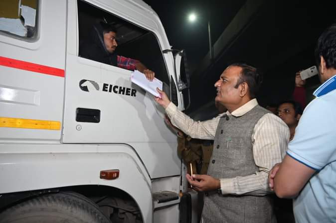Delhi Labour Minister Raaj Kumar Anand Checking Trucks