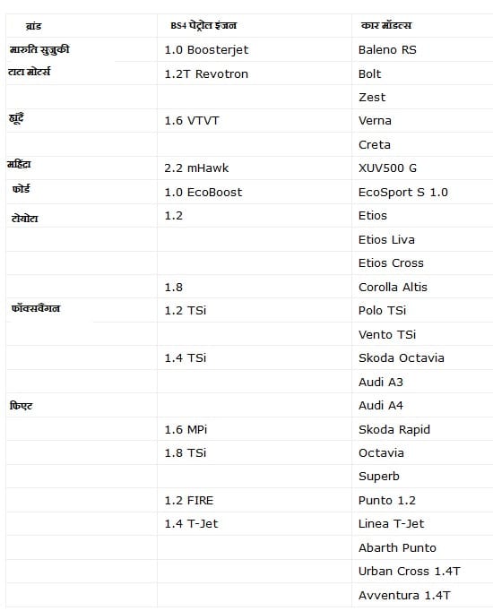 अगली स्लाइड में देखें बंद होने वाली पेट्रोल कारों की लिस्ट