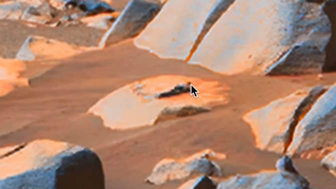 यूएफओ एक्सपर्ट स्कॉट सी वरिंग ने इन फोटोज में कुछ स्थानों की पहचान की है। उनका दावा है कि इन तस्वीरों में एलियन नजर आ रहा है जो लेटा हुआ दिख रहा है। उन्होंने कहा कि एलियन मार्स रोवर को देख रहा है। उन्होंने दावा किया है कि गुलाबी रंग का एलियन एक फीट लंबा है।