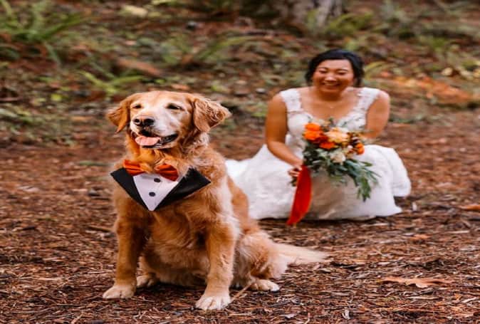महिला ने कुत्ते के साथ कराई वेडिंग फोटोज शूट
