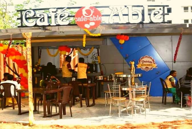 एक वेबसाइट की रिपोर्ट के मुताबिक, इस कैफे में काम कर रहे 12 लोगों में से 11 लोग लोकोमोटर दिव्यांग हैं। इसका मतलब यह है कि वह चल-फिर नहीं सकते हैं। वहीं एक सदस्य सुन नहीं सकता है। इस कैफे का नाम 'कैफे एबल' रखा गया है, जिसकी प्रतिदिन कमाई करीब दस हजार रुपये है। इस कैफे में हेड शेफ से लेकर जूस मास्टर, टी मास्टर, बिलिंग क्लर्क और सफाईकर्मी सहित सभी दिव्यांग हैं। जिलाधिकारी संदीप नंदूरी का कहना है कि मुझे अक्सर अलग-अलग दिव्यांग जनों से नौकरियों के लिए याचिकाएं मिलती थीं, लेकिन हर किसी को नौकरी देना संभव नहीं था। इस कारण कैफे खोलने का विचार आया।