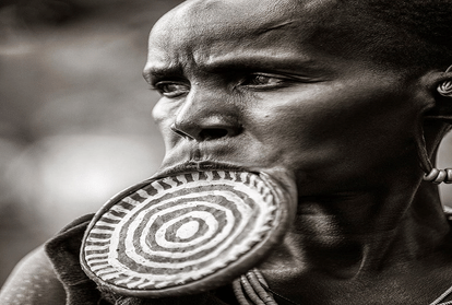 इथियोपिया की सूरी जनजाति के लोग बहुत चौड़े होठों को सुंदरता की निशानी समझते हैं। ऐसे में जब इस समुदाय की लड़कियां बड़ी होती हैं, तो उनके मुंह से नीचे के दो दांत निकाल दिए जाते हैं। इसके बाद निचले होठों में लकड़ी या मिट्टी का करीब 16 इंच चौड़ा टुकड़ा फंसा दिया जाता है। लड़की के मुंह में जितना बड़ा टुकड़ा फंसा दिया जाता है, वो लड़की उतनी ही सुंदर मानी जाती है।