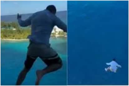 वॉशिंगटन के 27 वर्षीय नोकोले नेदेव ने बहामास में खड़ी रॉयल कैरिबियन क्रूज शिप की 11वीं मंजिल से सीधे पानी में छलांग लगा दी। नेदेव द्वारा शेयर किए गए वीडियो में उनके दोस्त उन्हें प्रोत्साहित करते दिखाई दे रहे हैं। वहीं, रॉयल कैरिबियन ने नेदेव और उसके दोस्तों पर आजीवन पाबंदी लगा दी है।