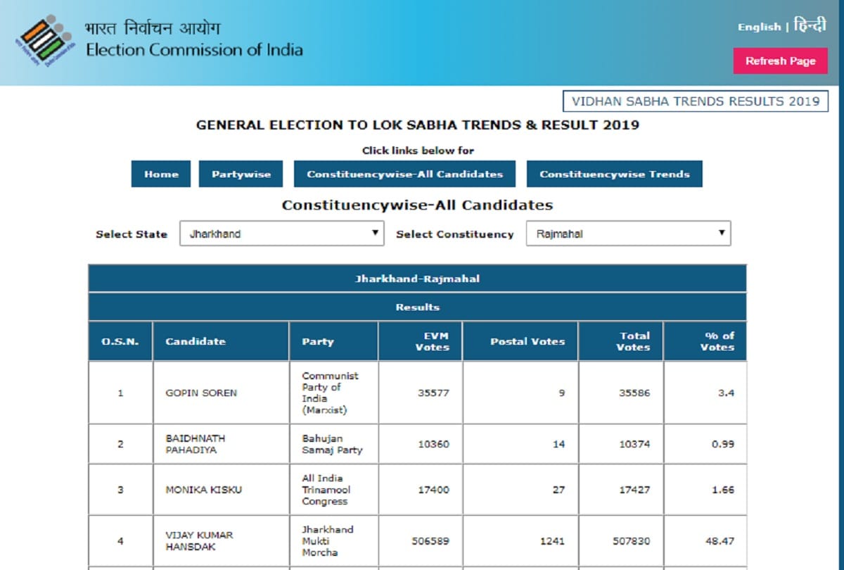 36 वर्षीय विजय हांसदा ने यह कारनामा पहली बार नहीं किया, 2014 में भी देश में जब मोदी लहर चल रही थी तब भी इस शख्स ने अपने क्षेत्र में जीत हसिल की थी। उन्हें इस बार 507830 वोट मिले जबकि भाजपा के हेमलाल मुर्मू को 408635 वोट मिले उन्होंने अपनी संसदीय सीट तकरीबन 99 हजार वोटों से जीती है।