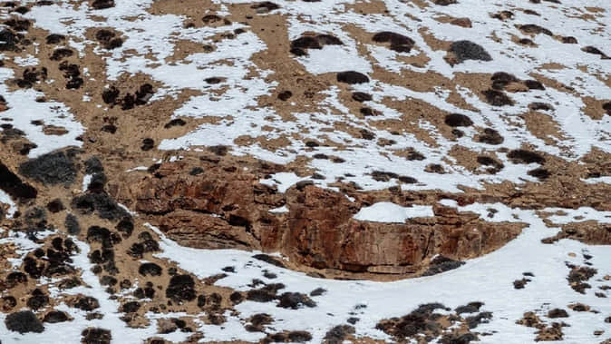 इस वायरल तस्वीर (Optical Illusion Viral Photo) को ऑप्टिकल इल्यूजन का बिल्कुल सटीक उदाहरण माना जा सकता है। इस तस्वीर में पहाड़ी नजर आ रही है जो बर्फ से ढकी हुई दिख रही है। इसी पहाड़ी पर तेंदुए छिपे हुए हैं। अब आपको ध्यान से देखना है कि तेंदुए कहां पर छिपे हैं।