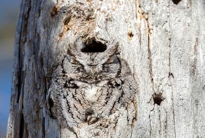 पेड़ के तने में छिपा उल्लू
