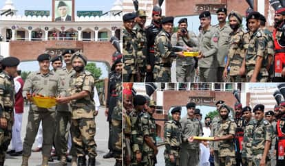 पाक रेंजरों संग बीएसएफ अधिकारियों ने बॉर्डर पर मनाई ईद