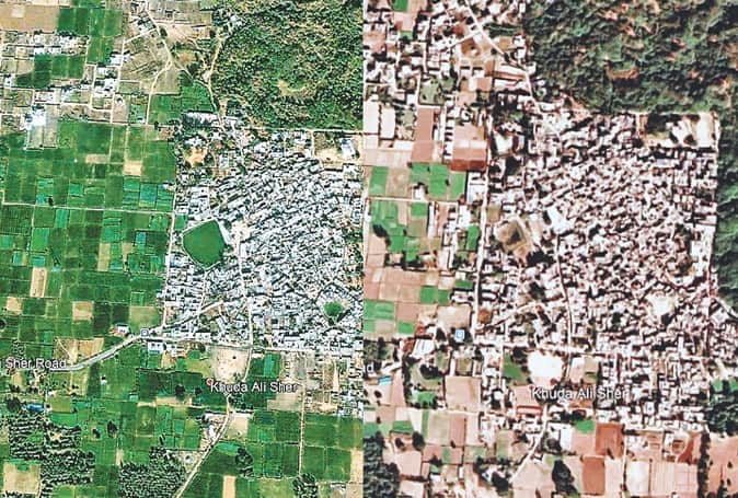 सैटेलाइट से ली गई तस्वीरों में देखा जा सकता है कि खुड्डा अलीशेर में अधिकतर अवैध निर्माण वर्ष 2009 के बाद हुआ है। फिरनी के बाहर वर्ष 2006 से पहले माधो कालोनी में कुछ ही घर थे, लेकिन आज सैकड़ों घर है। यही नहीं लॉकडाउन से पहले जो घर एक मंजिला थे, लोगों ने मौका देखते ही दूसरी मंजिल भी बना ली। यहां अब भी निर्माण कार्य हो रहा है। बीते 15 सालों में इस कदर अतिक्रमण हुआ है कि फिरनी की सड़क की चौड़ाई जो 22 फीट हुआ करती थी, आज वह 15 फीट से भी कम की रह गई है। खेतों में दुकानें बन रही हैं। पेरीफेरी में गैर कानूनी तरीके से बोरिंग भी हो रही है। लोगों द्वारा प्रशासन को इसकी शिकायत भी मिलती रही है, लेकिन कोई कार्रवाई नहीं हुई है।