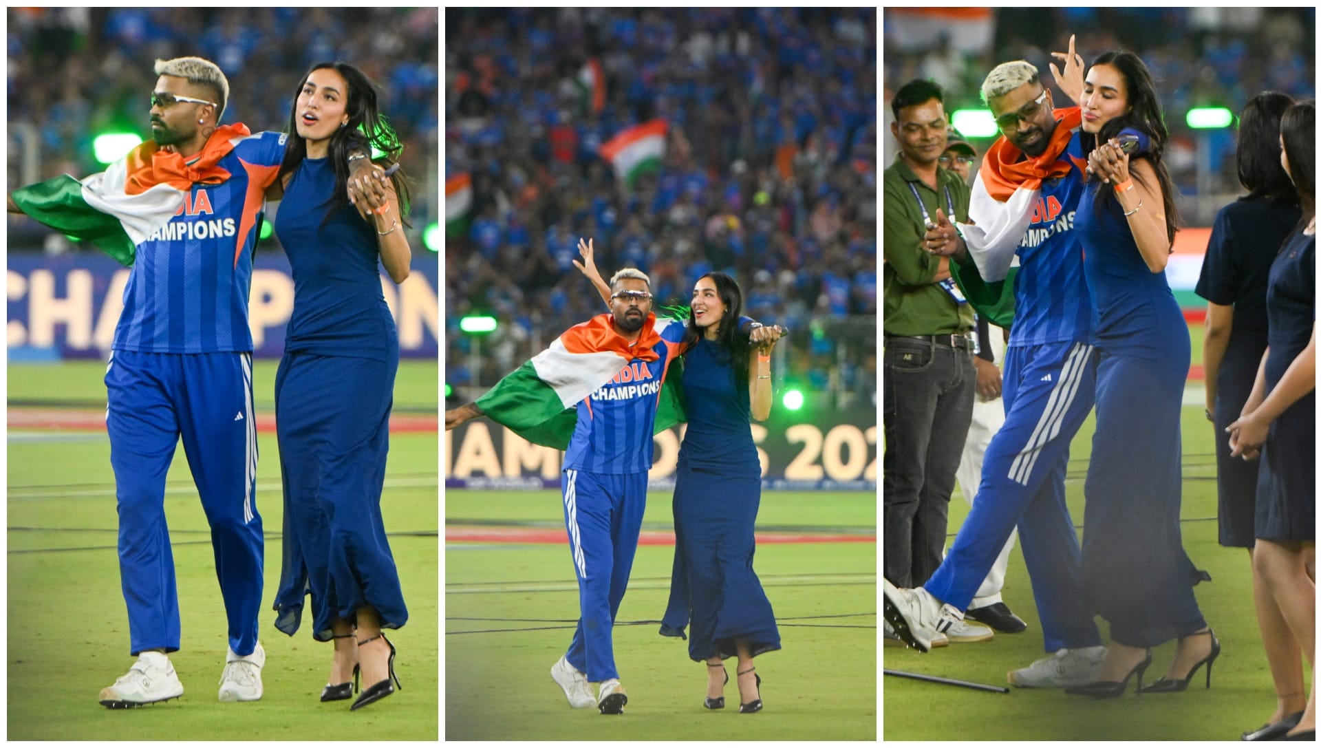 टीम इंडिया की टी20 वर्ल्ड कप जीत के बाद जश्न के कई खास पल सामने आए। हार्दिक पांड्या ने माहिका शर्मा के साथ भांगड़ा किया, जबकि दिग्गज सुनील गावस्कर, ईशान किशन और सूर्यकुमार यादव के साथ आइकॉनिक पोज दिया। मैदान पर खुशी, जश्न और यादगार तस्वीरों का शानदार नजारा देखने को मिला।