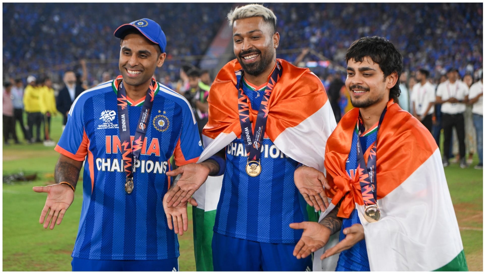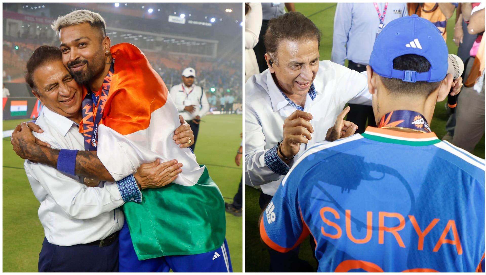 हार्दिक फिर सुनील गावस्कर से मिले। उन्होंने गावस्कर से भी अपना आइकॉनिक पोज करवाया। फिर सूर्यकुमार और ईशान के साथ भी वो पोज दोहराया। गावस्कर ने फिर सूर्यकुमार और शिवम दुबे को भी बधाई दी।