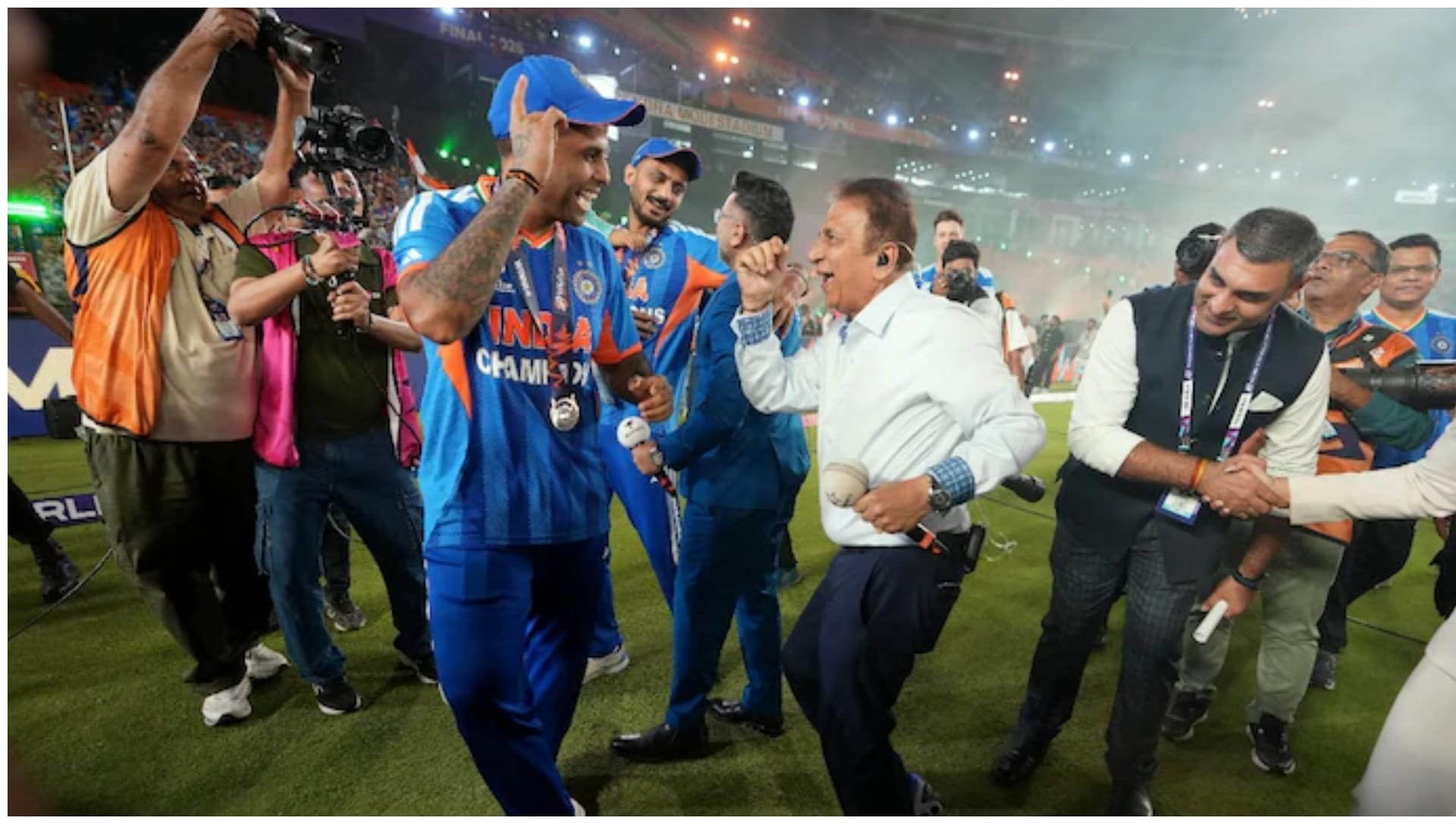 आठ मार्च को जैसे ही भारत ने फाइनल में न्यूजीलैंड को हराकर टी20 वर्ल्ड कप का खिताब जीता, गावस्कर अपनी खुशी रोक नहीं पाए। प्रेजेंटेशन से ठीक पहले ब्रॉडकास्ट कैमरों ने उन्हें मैदान पर डांस करते हुए कैद किया। बाद में उन्होंने कप्तान सूर्यकुमार यादव के साथ भी डांस किया और टीम के साथ जश्न का हिस्सा बने। यह पल सोशल मीडिया पर तेजी से वायरल हो गया और फैंस ने भी इस खास लम्हे को खूब पसंद किया।
