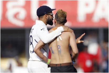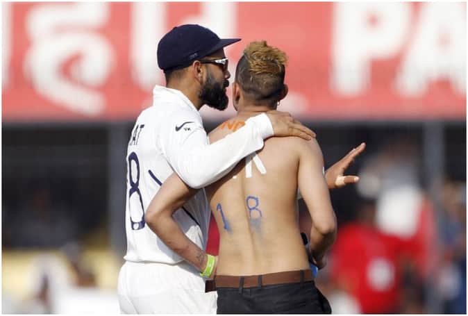 VIDEO: बीच मैदान शर्ट खोलकर विराट से मिलने पहुंचा जबरा फैन, कंधे पर हाथ रख कोहली ने की ख्वाहिश पूरी
