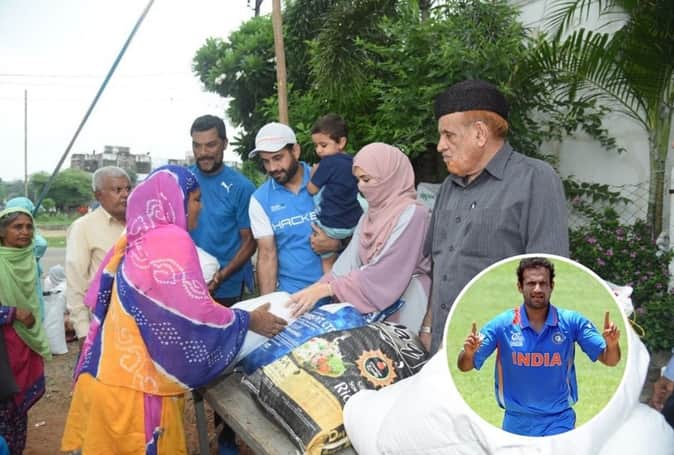 इरफान पठान अपने परिवार के साथ भूखों को अन्न बांटते हुृए