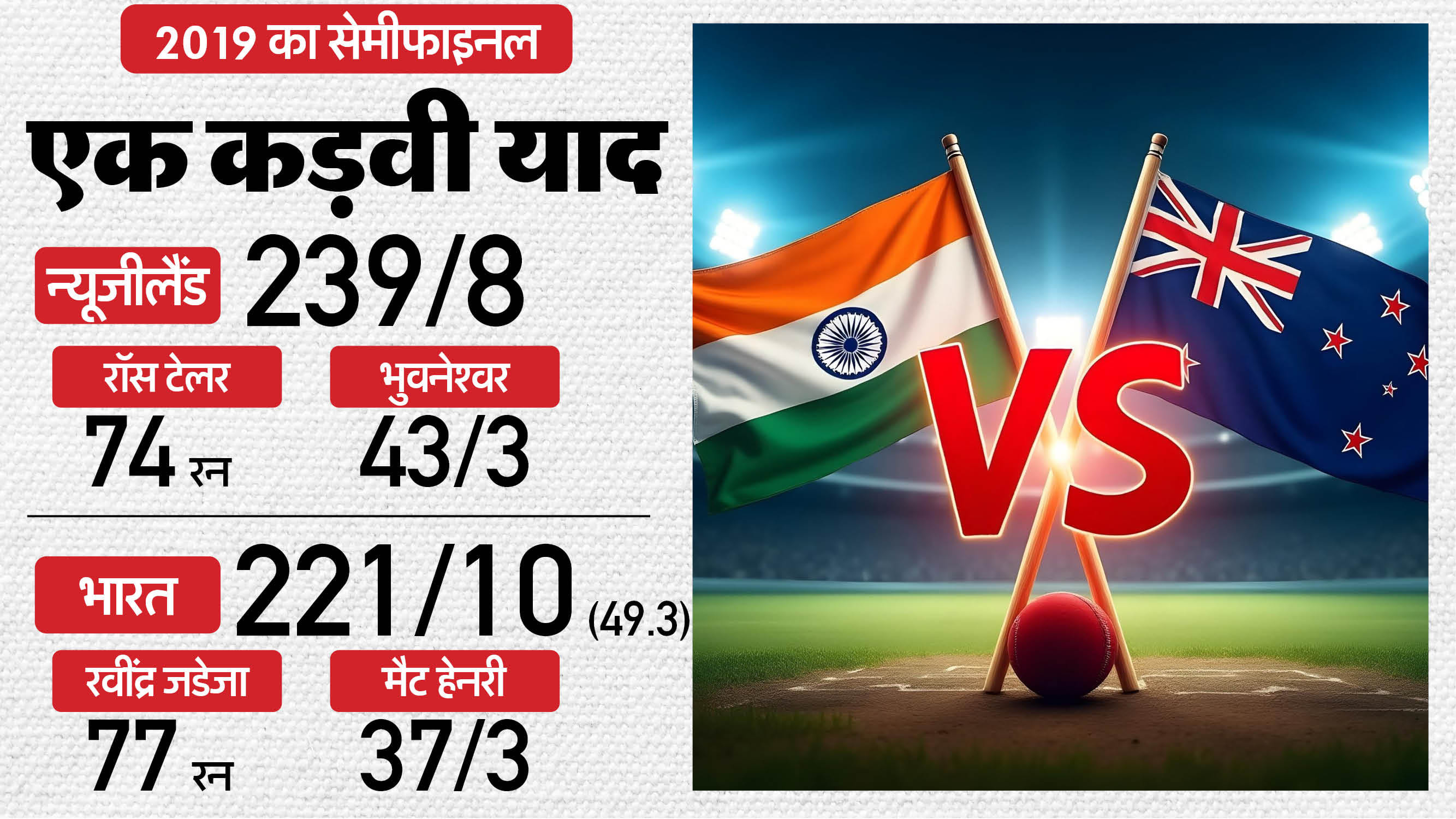 आईसीसी नॉकआउट में भारत vs न्यूजीलैंड