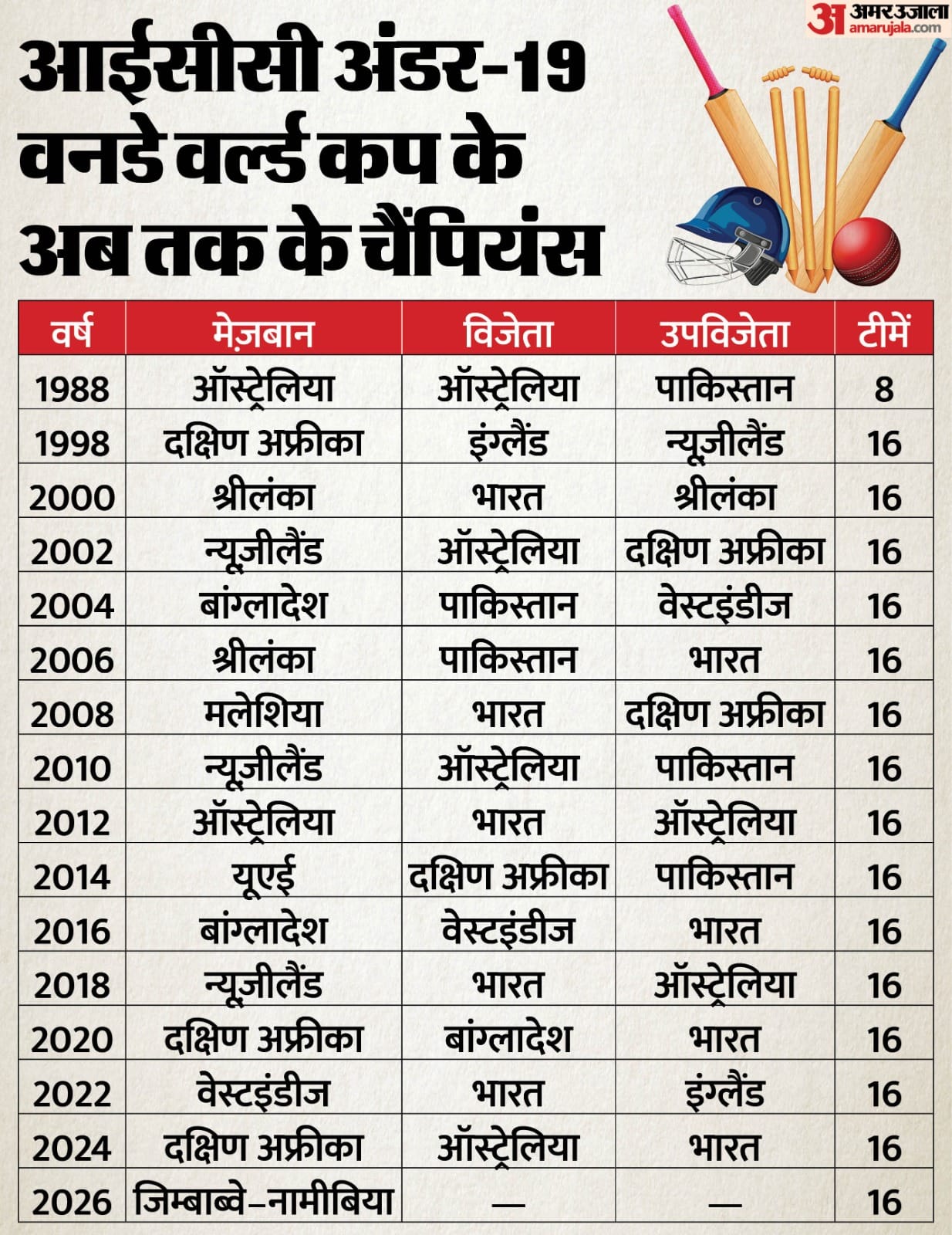 भारत इस टूर्नामेंट की दिग्गज टीम है। भारत ने सबसे ज्यादा पांच बार यह खिताब जीता है, जबकि ऑस्ट्रेलिया चार बार, पाकिस्तान दो बार और वेस्टइंडीज, दक्षिण अफ्रीका, बांग्लादेश और इंग्लैंड एक-एक बार चैंपियन रहे हैं। पिछला संस्करण 2024 में ऑस्ट्रेलिया ने भारत को हराकर जीता था। जैसे ही 2026 का संस्करण करीब आ रहा है, एक बार फिर चर्चा है कि कौन भारत के लिए अगला महान युवा कप्तान बनेगा?