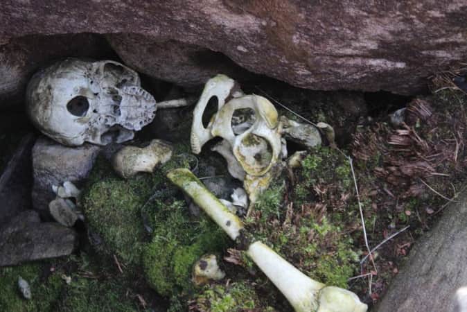 त्रियुगीनारायण-केदारनाथ ट्रेक पर किमी 6 से 14 के बीच मिले कंकालों पर लिपटे कपड़े, आज भी सुरक्षित।