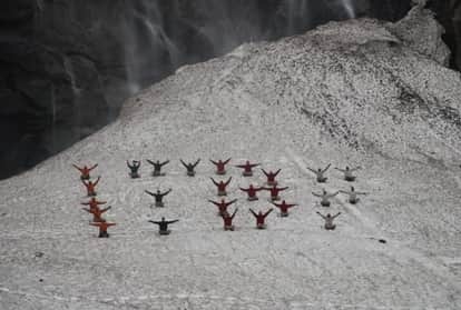 14000 फीट की ऊंचाई पर जीरो डिग्री तापमान में बर्फ के बीच हिमवीरों ने किया योग, तस्वीरें...
