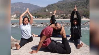 ऋषिकेश में योग करते साधक