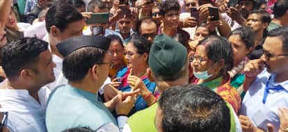 शहीदों के परिजनों ने सीएम धामी को रोका।