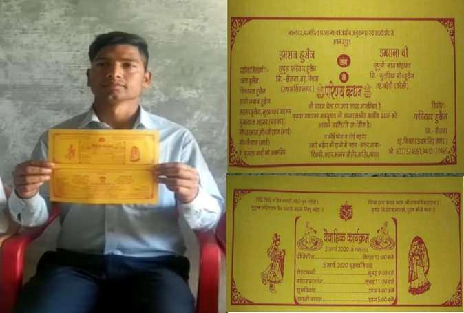 फरियाद हुसैन के चार बेटों इमरान, मो. उस्मान, जीशान और फैजान में सबसे बड़े बेटे इमरान हुसैन का निकाह पांच मार्च को है। यह निकाह भी हर निकाह की तरह ही सामान्य होगा, लेकिन जो बात इस निकाह को खास बनाती है, वह है इमरान के निकाह का कार्ड। फरियाद हुसैन ज्यादा पढ़े-लिखे नहीं हैं लेकिन उन्होंने हिंदु-मुसलमान भाईचारे का जो पाठ समाज को पढ़ाया है, वह तारीफ ए काबिल है।