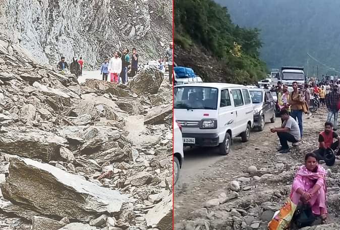 बदरीनाथ हाईवे पर भूस्खलन के कारण फंसे यात्री