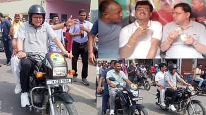 Champawat By Election: बाइक पर निकले सीएम धामी डोर टू डोर प्रचार करने, चुनाव से एक दिन पहले दिखा ऐसा अंदाज, तस्वीरें