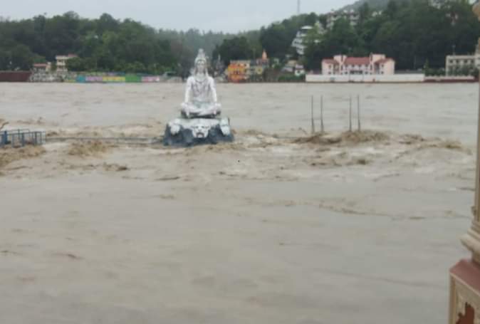 ऋषिकेश में गंगा घाट डूब गए हैं। गंगा नदी एक बार फिर भगवान शिव की मूर्ति को छूकर बह रही है। बता दें कि ऐसा दृश्य 2013 में आई केदारनाथ आपदा में देखा गया था। हरिद्वार में भी गंगा उफान पर है।