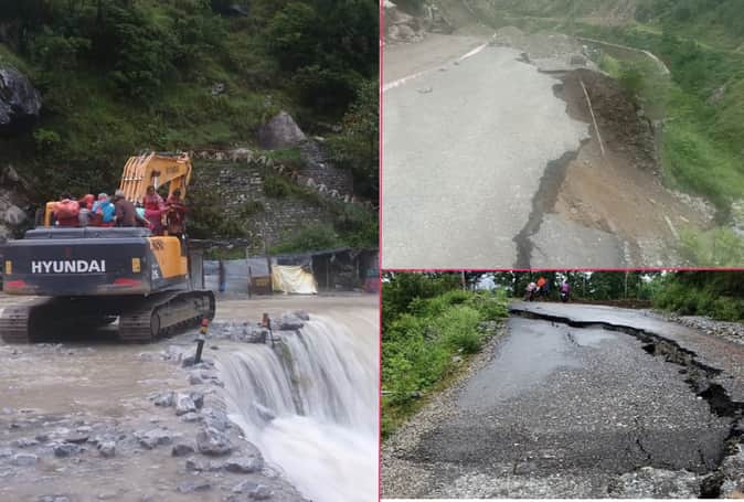 बदरीनाथ हाईवे: पोकलैंड पर बैठाकर लोगों को पार कराया उफनाया नाला, सड़क में पड़ी दरारें, पुश्ता नदी में समाया