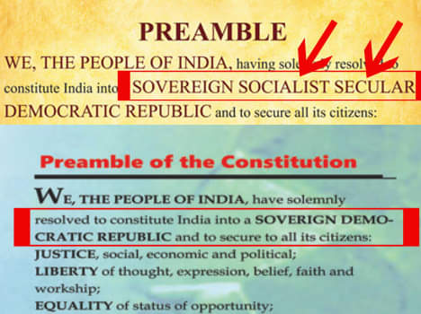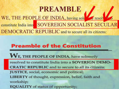 इस विज्ञापन में संविधान की प्रस्तावना में लिखे धर्मनिरेपक्षता और समाजवादी शब्द को ही गायब कर दिया गया। हालांकि विवाद होने पर पार्टी ने सफाई देते हुए इसे मानवीय भूल करार दिया और इसके लिए माफी मांग ली।