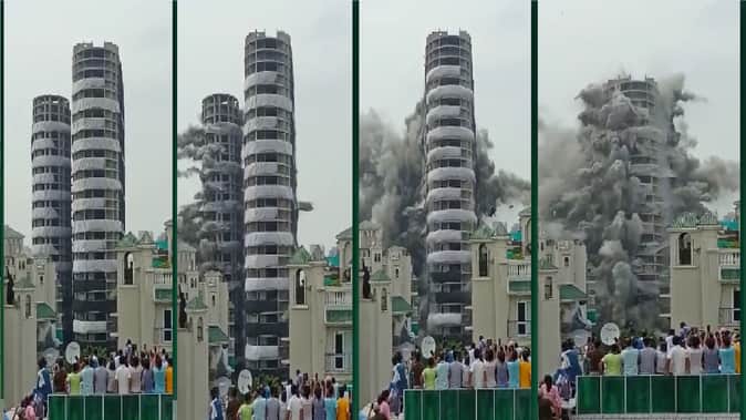 नोएडा में भ्रष्टाचार की नींव पर खड़ा सुपरटेक ट्विन टॉवर जमींदोज हो चुका है। इस इमारत को गिराने के लिए करीब 3700 किलो विस्फोटक का इस्तेमाल किया गया था। जैसे ही दोपहर के 2ः30 बजे, एक तेज धमाके के साथ पूरी इमारत ढह गई। 32 मंजिला इमारत को गिरने में महज आठ सेकंड का वक्त लगा। इसके बाद कई किलोमीटर तक धूल का गुबार फैल गया।