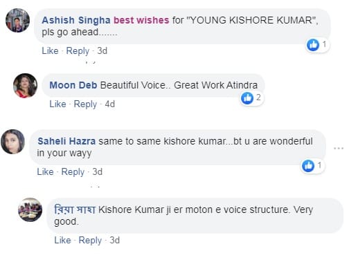 सुराजीत के गाने वाले वीडियो पर यूजर्स प्रतिक्रिया दे रहे हैं तो वहीं अतींद्र की भी तारीफ कर रहे हैं। एक यूजर ने लिखा- 'यंग किशोर कुमार को ढेरों शुभकामनाएं। आगे बढ़ते रहो।' अन्य यूजर ने लिखा- 'एक दम किशोर कुमार की आवाज, तुम बहुत अच्छा कर रहे हो।' एक और यूजर ने कमेंट किया- 'शानदार आवाज, बहुत अच्छा काम कर रहो हो अतींद्र।'