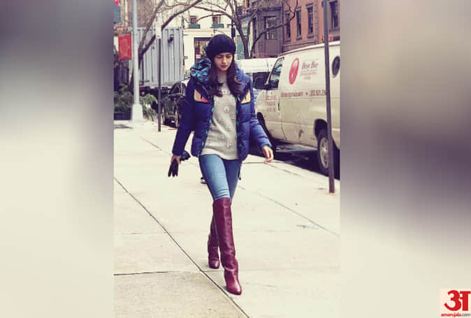 हाल ही में आलिया की एक फोटो जमकर वायरल हो रही है। आलिया को न्यूयॉर्क की गलियों में स्पॉट किया गया है। इस फोटो में आलिया में आलिया ने फैंडी की नाइलोन जैकेट पहने नजर आ रही हैं। जैकेट के साथ आलिया ने ग्रे कलर का स्वेटर पहना हुआ। बता दें डेनिम के उपर महरून रंग के बूट और ब्लैक कैप में आलिया बेहद ही सिंपली और खूबसूरत नजर आ रही है।
