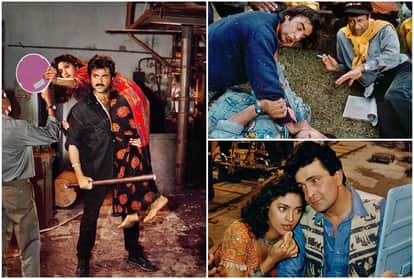 चौथी तस्वीर जूही चावला और ऋषि कपूर की है। ये तस्वीर 1993 में मुंबई में क्लिक की गई थी। तस्वीर में दिख रहा है कि ये एक रोमांटिक सीन है और सीन के शूट से पहले जूही चावला मेकअप टचअप ले रही हैं। तस्वीर में ऋषि और जूही की प्यारी केमिस्ट्री नजर आ रही है।