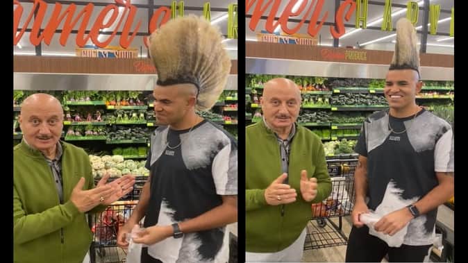 अनुपम खेर ने इस छोटी सी वीडियो क्लिप को शेयर करते हुए कैप्शन में लिखा, '(सईद) सुपर मार्केट में! वह दयालु और सहायक थे, जिन्होंने मुझे उनकी अनोखी हेयर स्टाइल के बारे में उनसे बात करने दिया। शुरू में मुझे लगा कि यह एक विग है। लेकिन फिर उन्होंने पुष्टि की कि यह उनके अपने बाल हैं। दोस्त है! वास्तव में 'कुछ भी हो सकता है!'