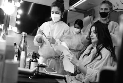सोशल मीडिया पर सक्रिय रहने वाली अनुष्का शर्मा ने हाल ही में सेट से एक तस्वीर साझा की है। उन्होंने एक ब्लैक एंड व्हाइट तस्वीर साझा की है जिसमें वो मेकअप वाली कुर्सी पर बैठी नजर आ रही हैं और पूरी टीम उनके पास है। इतना ही नहीं तस्वीर में दिख रहा है कि अनुष्का फिल्म की स्क्रिप्ट भी पढ़ रहीं हैं।