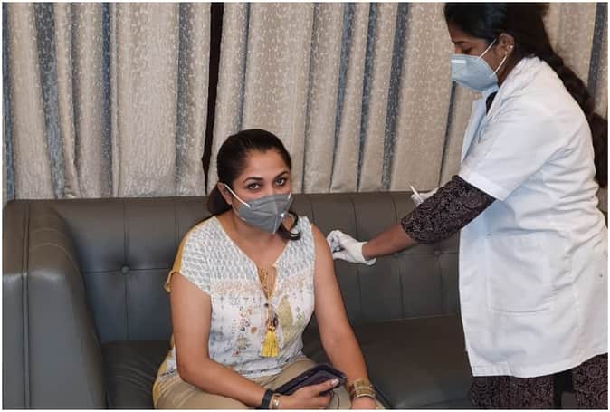 'बाहुबली' फेम एक्ट्रेस राम्या कृष्णन ने लगवाई कोविड-19 वैक्सीन की पहली डोज, साझा की तस्वीर