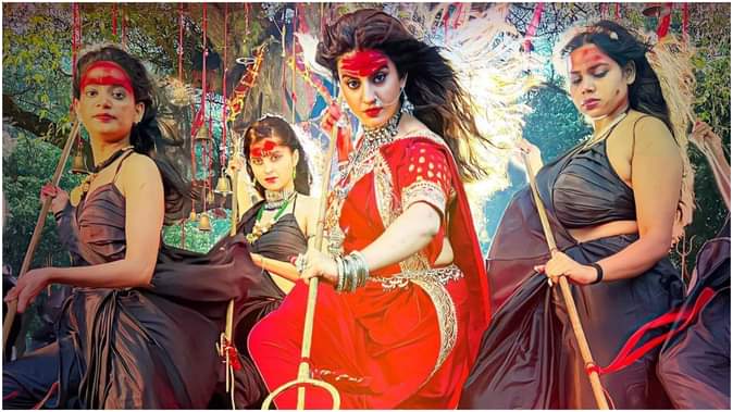 दरअसल, अक्षरा सिंह ने अपने इंस्टाग्राम अकाउंट पर एक पोस्ट शेयर किया है, जिसके चलते वह ट्रोल्स के निशाने पर आ गई हैं। अक्षरा जल्द एक नए गाने चौसठ जोगिनिया में नजर आने वाली हैं, जिसके पोस्टर में वह माथे पर सिंदूर लगाकर और खुले बालों में त्रिशूल लिए नजर आ रही हैं। अक्षरा लाल साड़ी में रौद्र रूप में दिखाई दे रही हैं। वहीं, साथ में बाकी डांसर काली साड़ी में त्रिशूल लिए नजर आ रही हैं।