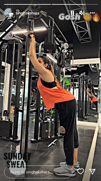 तस्वीर में अक्षरा ब्लैक लोअर और ऑरेंज टॉप में नजर आ रही हैं। अक्षरा ने स्टोरी पर अपनी साइड फोटो लगाई है, लिहाजा इसमें उनका चेहरा नजर नहीं आ रहा है। इसके साथ उन्होंने कैप्शन में लिखा है, 'संडे स्वीट।' तस्वीर देखकर समझा जा सकता है कि अक्षरा की टोंड फिगर के पीछे उनकी कड़ी मेहनत है।