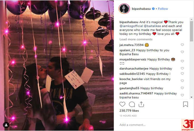 बता दें बिपाशा ने अपने इंस्टाग्राम अकाउंट से अपने जन्मदिन के जश्न की कुछ तस्वीरें और वीडियो शेयर की हैं। इन तस्वीरों में वह अपने पति करण सिंह ग्रोवर के साथ लिप लॉक करती नजर आ रही हैं। तस्वीर और वीडियो को शेयर करते हुए बिपाशा ने कैप्शन में लिखा है कि सभी को शुक्रिया, जिसने मुझे स्पेशल महसूस कराने की कोशिश की।