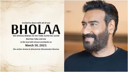 बॉलीवुड सुपरस्टार अजय देवगन जल्द ही रनवे 34 में नजर आने वाले हैं, लेकिन फिल्म रिलीज होने से पहले उन्होंने अपने नए प्रोजेक्ट का एलान कर दिया है। अजय की नई फिल्म का नाम भोला है। यह तमिल भाषा में बनी फिल्म कैथी की रीमेक होगी। फिल्म के नाम के साथ एक्टर ने इसकी रिलीज डेट की घोषणा कर दी है। अजय की यह फिल्म अगले साल 30 मार्च को सिनेमाघरों में रिलीज होगी।
