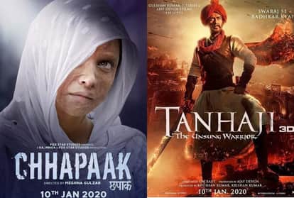 दीपिका पादुकोण की फिल्म छपाक और अजय देवगन की फिल्म तानाजी: द अनसंग वॉरियर एक ही दिन रिलीज हुई थीं। दोनों ही फिल्मों की रिलीज से पहले कांटे की टक्कर बताई जा रही थी। लेकिन रिलीज के बाद तानाजी का पलड़ा भारी हो गया है। अजय की फिल्म तानाजी लगातार रिलीज के 14वें दिन रेस में बराबरी से बनी हुई है। तो वहीं दीपिका पादुकोण की फिल्म छपाक जेएनयू विवाद की वजह से ठंडे बस्ते में चली गई है।